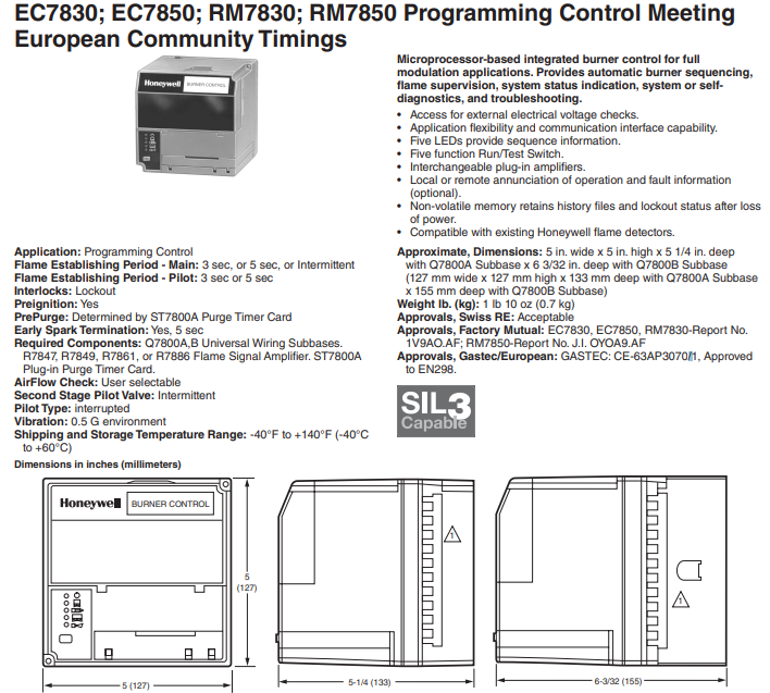Controle integrado de queimadores baseado em microprocessador para aplicações de modulação completa. Oferece sequenciamento automático de queimadores, supervisão de chama, indicação do status do sistema, autodiagnóstico e solução de problemas.